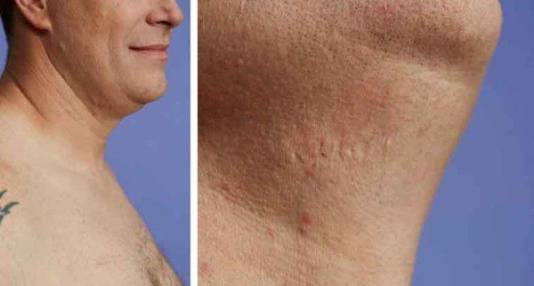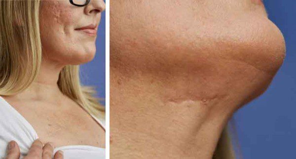 The visibility of the scars will depend on your skin tone and individual healing process. There are two or three incisions made to place the device. Each patient will have one incision under the chin and one below the collarbone. Some patients will also have one on the side of the rib cage.